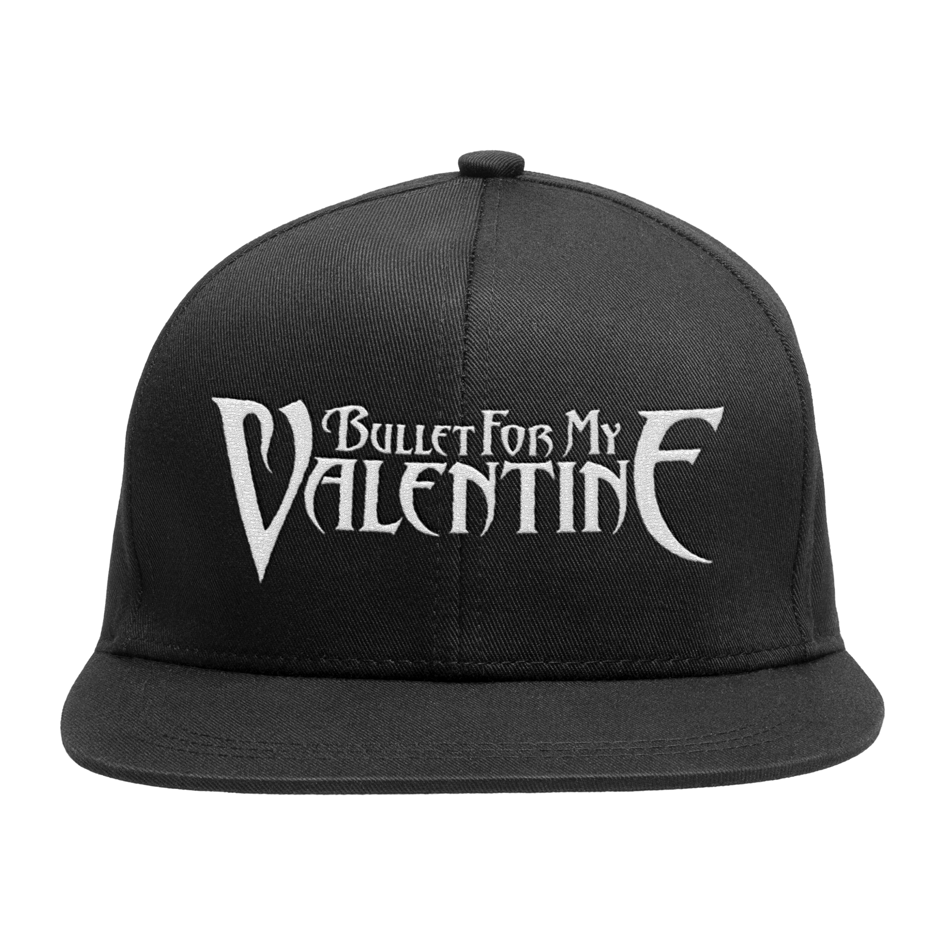 Logo black high-profile snapback cap with a flat peak. Plastic snapback closure, under-peak lining, stitching eyelets for ventilation, and a self-fabric dome at the top.